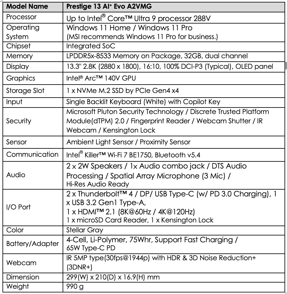 “Intel’s long-standing partnership with MSI has been instrumental in co-engineering the MSI Prestige and Summit. Harnessing the power of AI with the all-new Intel Core™ Ultra processors that redefine what’s possible in modern computing, these devices offer an unmatched balance of performance and energy efficiency. Together, we’re proud to unveil the next generation of AI PCs that will revolutionize experiences for gamers, creators, and professionals alike,” said Michelle Johnston Holthaus, Intel executive vice president and general manager, Client Computing Group.