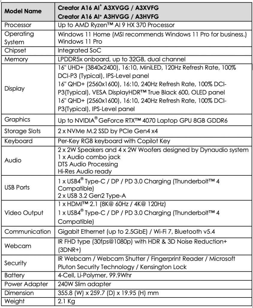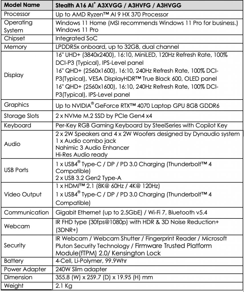 At IFA 2024, MSI will showcase the whole new laptops with the AMD Ryzen™ AI 300 Series Processors, including Stealth A16 AI+, Summit A16 AI+, Prestige A16 AI+ and Creator A16 AI+. By featuring the latest AMD Ryzen AI processors, these laptops can offer 2.8x times more TOPs than the previous generation, which can optimize on AI computing power, enabling generative AI and large language models to run directly on the laptops.