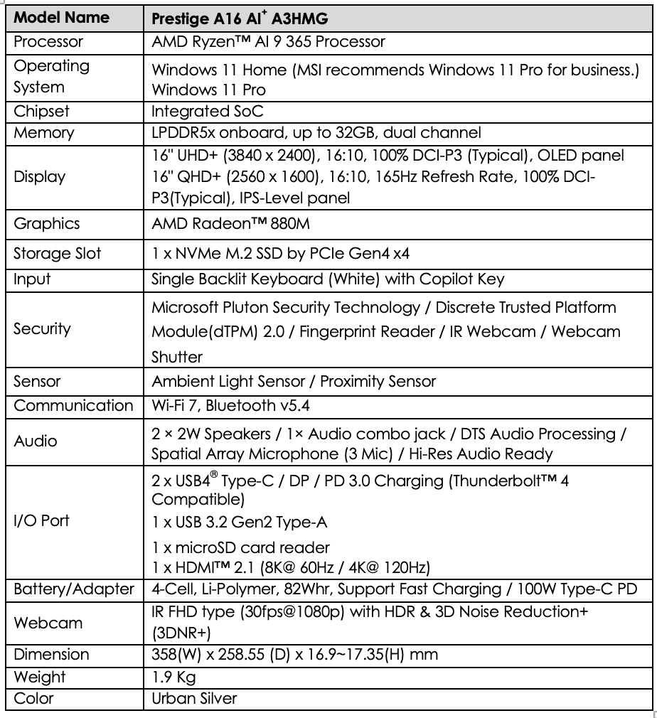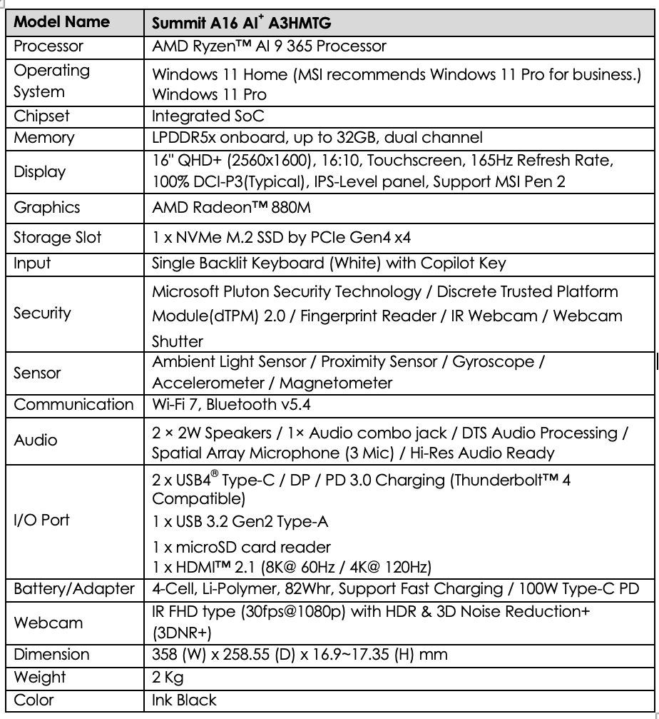 On the other side, the Summit A16 AI+ and Prestige A16 AI+ will also be shown on AMD Ryzen™ AI 300 Series Processors, featuring with MSI exclusive AI-driven software, MSI AI Engine and MSI AI Noise Cancellation Pro. The refined laptop design and the optimized AI-driven software make Summit A16 AI+ and Prestige A16 AI+ ideal laptops for the business environment.