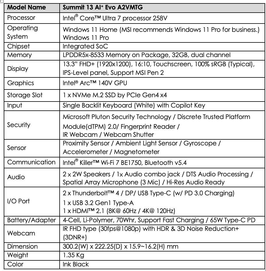 The Summit 13 AI+ Evo, also part of the business and productivity series, now features the new Intel Core™ Ultra processors (Series 2), a lightweight body, comprehensive security, and the MSI Pen 2 stylus supporting MPP 2.6, making it the most versatile 13-inch flip laptop. It is available for purchase in XX, with prices starting at £XXX.