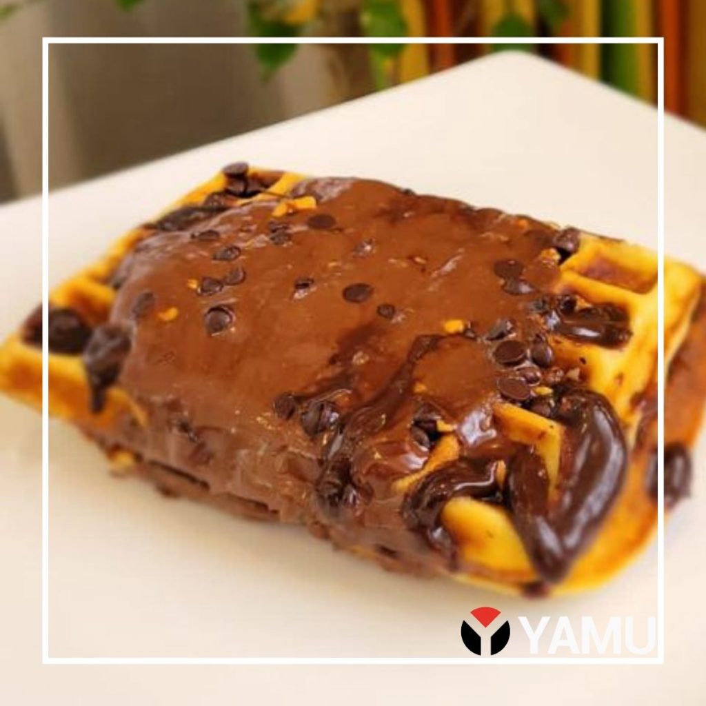 Yum yum! It is a triple chocolate treat. This waffle has chocolate chips sprinkled on it infused