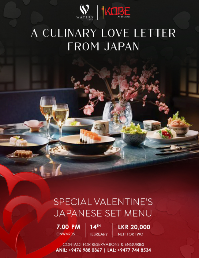 Price: LKR 9,500 nett per person (Redeemable on Food & Beverage)