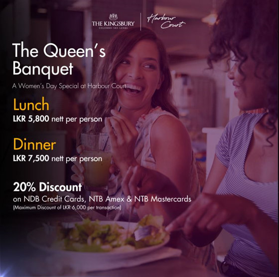 Celebrate Women’s Day at The Kingsbury Colombo with High Tea, Girls’ Night Out, Lunch, or Dinner.