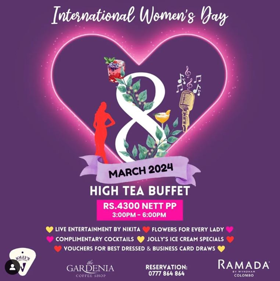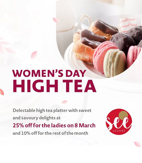 Woman’s Day Specials High Tea from 8th – 16th of March 2024, from 4 p.m. to 6 p.m.
