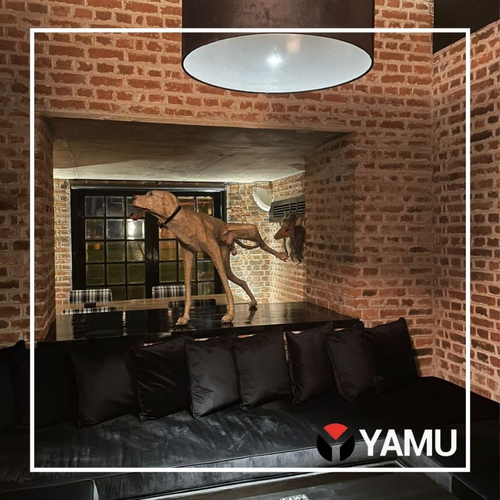 Close to the entrance of the restaurant, there is a downward spiralling staircase that will take you to the wine cellar. The room with the wine cellar also includes a lounge area with a couple of comfy sofa sets for you to relax and sip wine or any other drink. They call the wine cellar room the ‘Animal room’ which is what inspired the animal-themed artworks and ornaments surrounding the room.