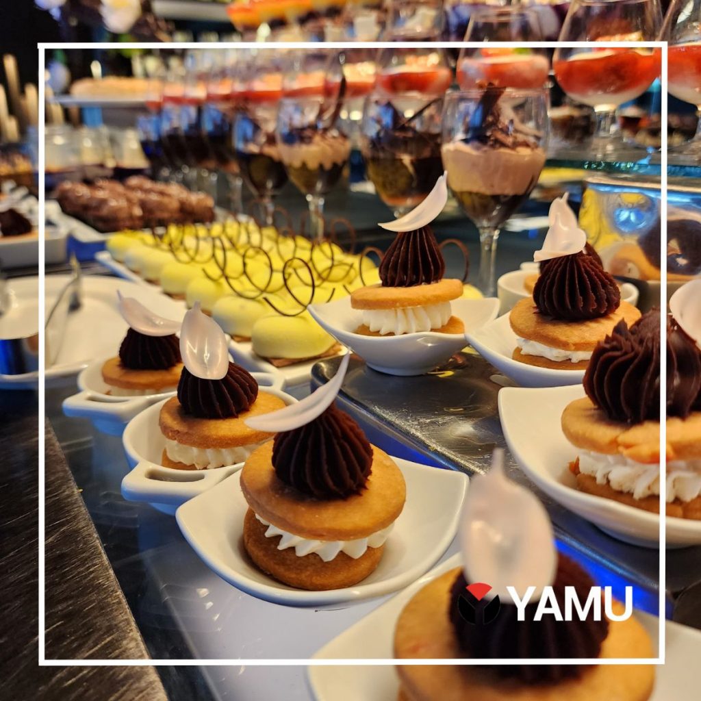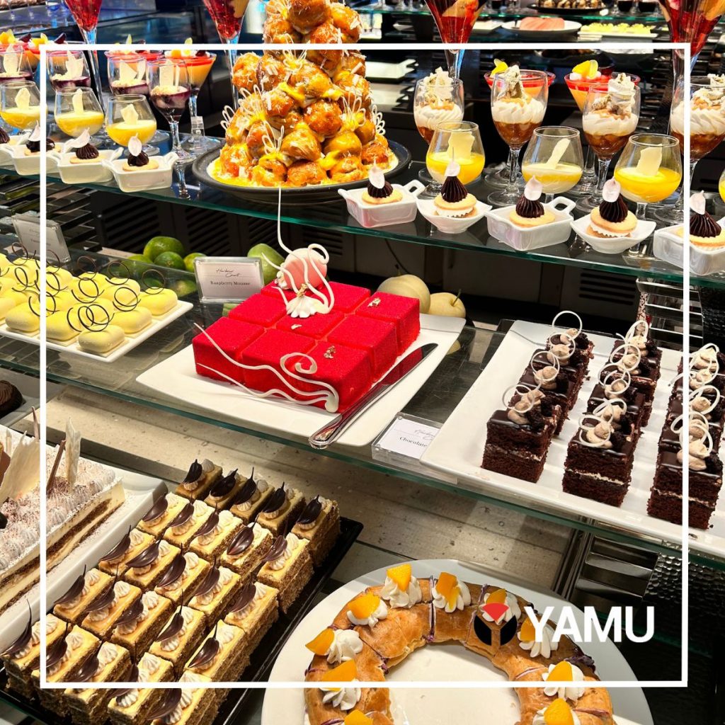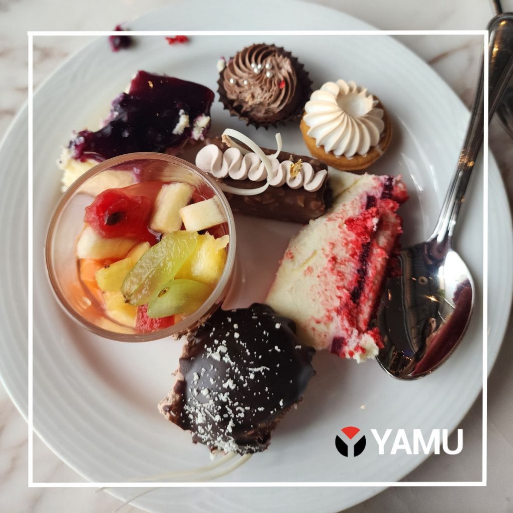 After indulging in starters and mains, we questioned how we could possibly make room for the hug *emphasis on huge*—array of vibrant desserts in various sizes.