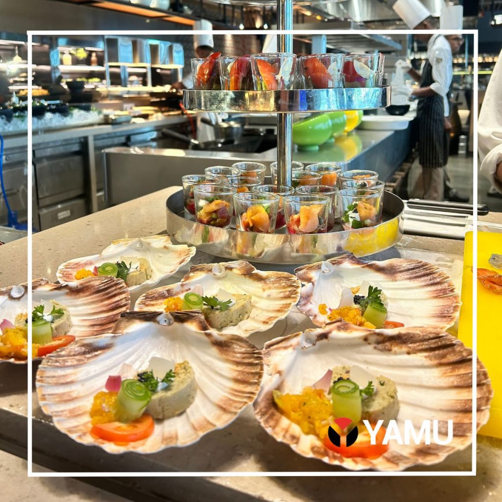 The buffet brimmed with an enticing array of sushi and salads, alongside the glistening bounty of the sea – prawns, cuttlefish, crabs, oysters and mussels, all radiating freshness. A dedicated cheese station and a build-your-own salad bar with a selection of delectable dressings completed the feast.