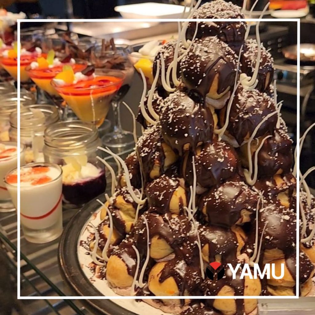 The Chocolate Profiterole Tower is a choux pastry filled with cream and topped up with chocolate sauce. It was delicious and filled with the best chocolate and cream flavours.