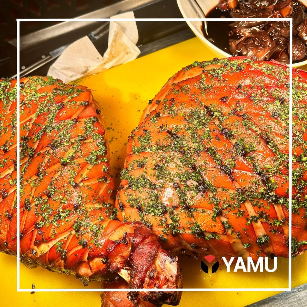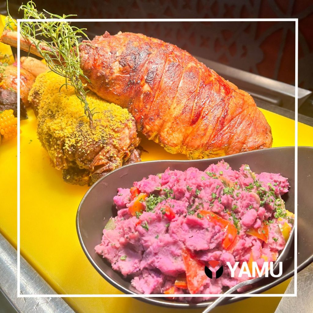 - Herb and Nut crusted Lamb Leg with Mint Jus Mashed potatoes- parsley and Congo