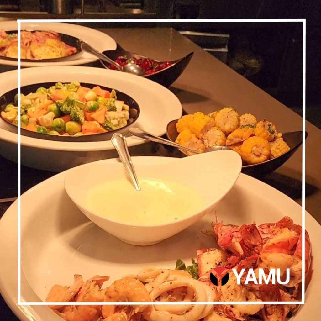 Here’s everything they had: Grilled Fish with Lemon Butter Sauce, Beef Lasagna with Fungi, Chicken Drumstick with Mushroom Sauce, Braised Pork Fillet with Calvados Sauce, Grilled Lamb Chop with Shiraz Jus, Lyonnaise Potatoes, Buttered Vegetables, Grilled Seafood and a Pasta Corner.