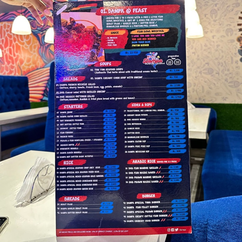 Dampa Seafood’s commitment to the seafood theme is evident the moment you step inside. The lively ambiance, adorned with ocean-inspired decor and a burst of colors, sets the stage for a dining experience like no other.