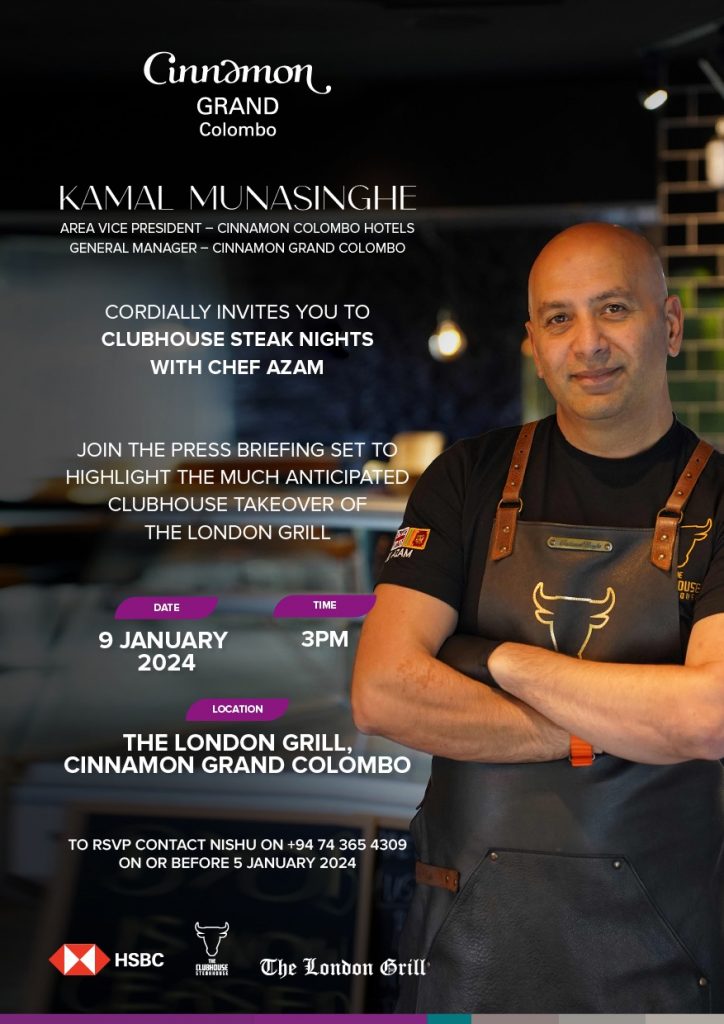 Picture this: an invitation from the ever-charming Kamal Munasinghe, the brains behind Cinnamon Grand Colombo and Area Vice President for Cinnamon Hotels, Colombo, beckoning us to London Grill’s Clubhouse Steak Night with the maestro himself, Chef Azam.