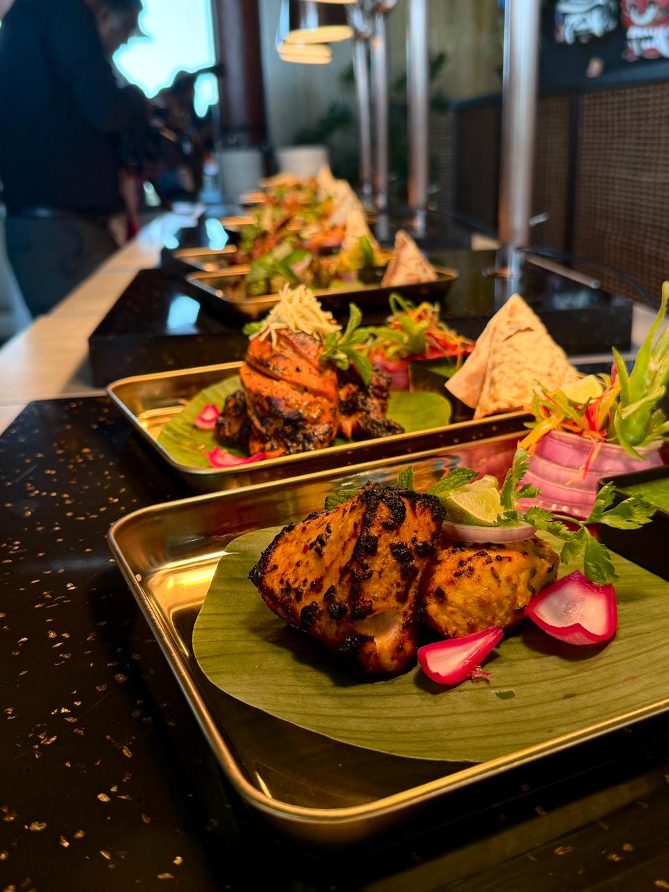 Experience a burst of flavours with the Starts, featuring Garlic Chutney Potatoes – Maharashtrian-style tempered potatoes topped with garlic and chilli.